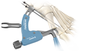 Le système Pecaplasty® permet la correction percutanée des hallux valgus de façon reproductible. Le guide permet de maîtriser les étapes de la procédure en contrôlant la translation et en positionnant les broches de manière précise. Les implants PECA® sont utilisés pour fixer et stabiliser la correction.